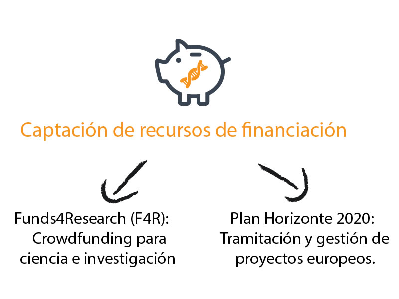 Crowdfunding para investigación y ciencia: A travésde marketing on line y off line logramos captar recursos económicos para proyectos de investigación sin ánimo de lucro. Llevamos publicados dos proyectos para los que hemos logrado aproximadamente 120.000 euros.